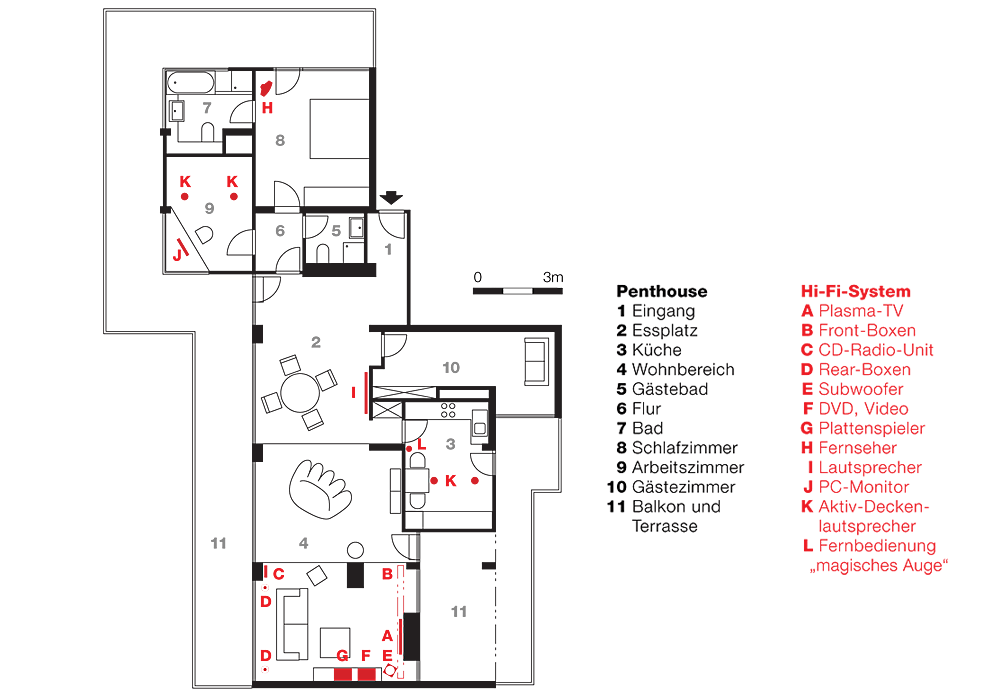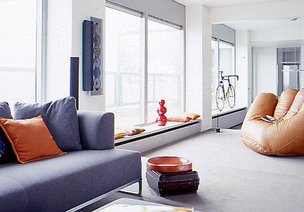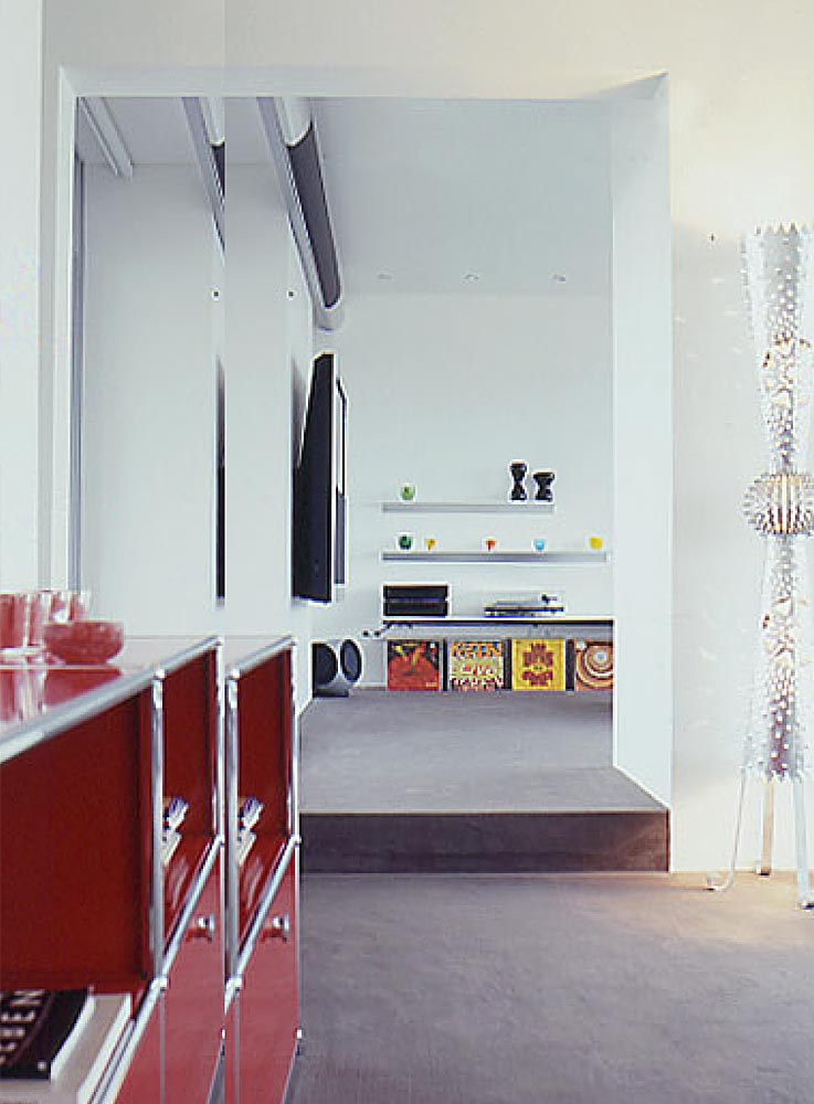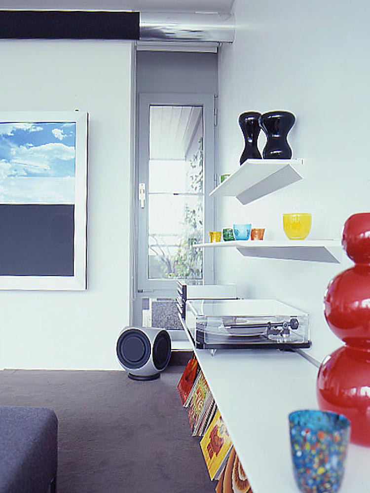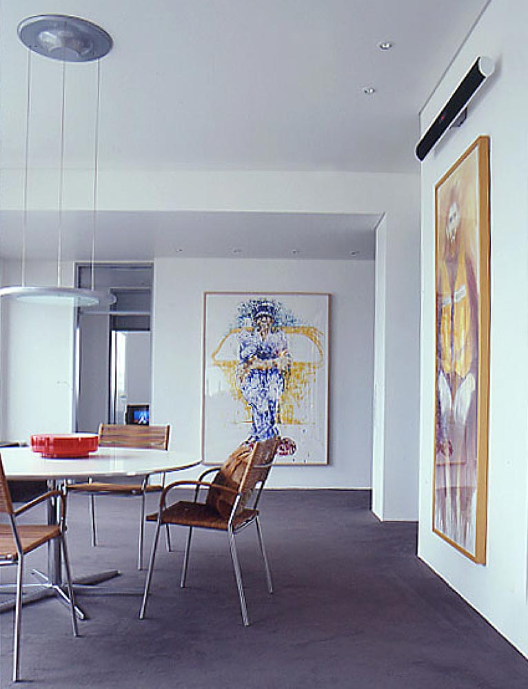 Karlsruhe, 17 Stockwerk: Sonnenlicht durchflutet aus allen Himmelsrichtungen ein 175 qm große Penthousewohnung. Dazu kommt die phantastische Aussicht im Westen auf die Pfälzer Berge, weiter südlich auf die Vogesen. Hierfür konzipierten wir ein neues Raumkonzept.