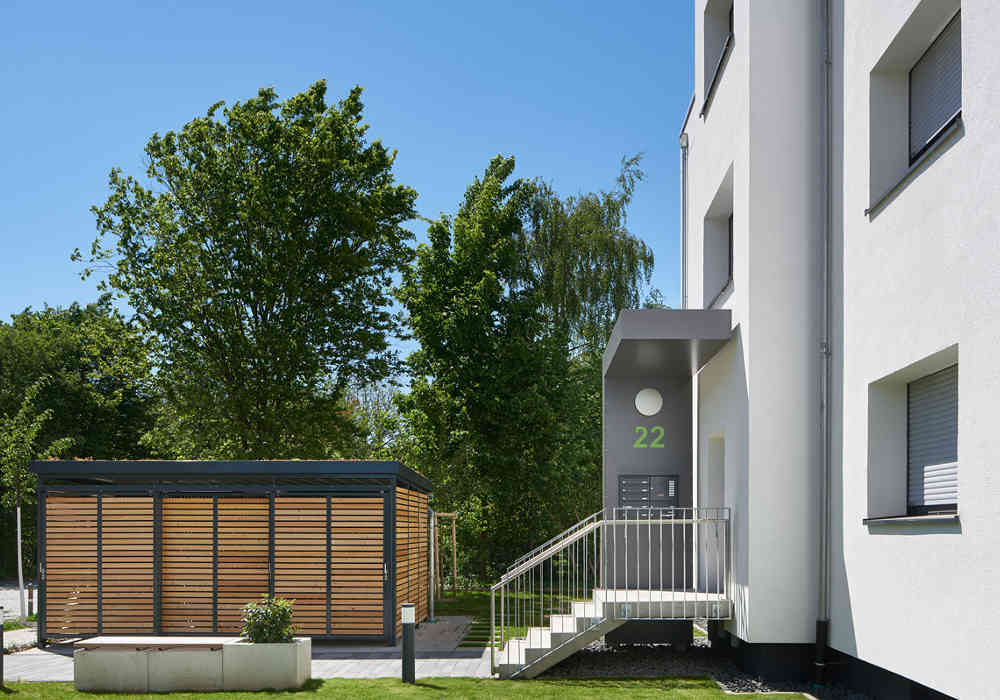 In zentraler Lage an der Schloßgartenstraße wurden durch Aufstockung eines 50-er Jahre Mietwohnhauses zusätzlich neue attraktive Wohnraum geschaffen. Es entstanden dort zunächst drei neue Wohneinheiten, 8 weitere Wohneinheiten werden gerade in der Nachbarschaft erstellt.